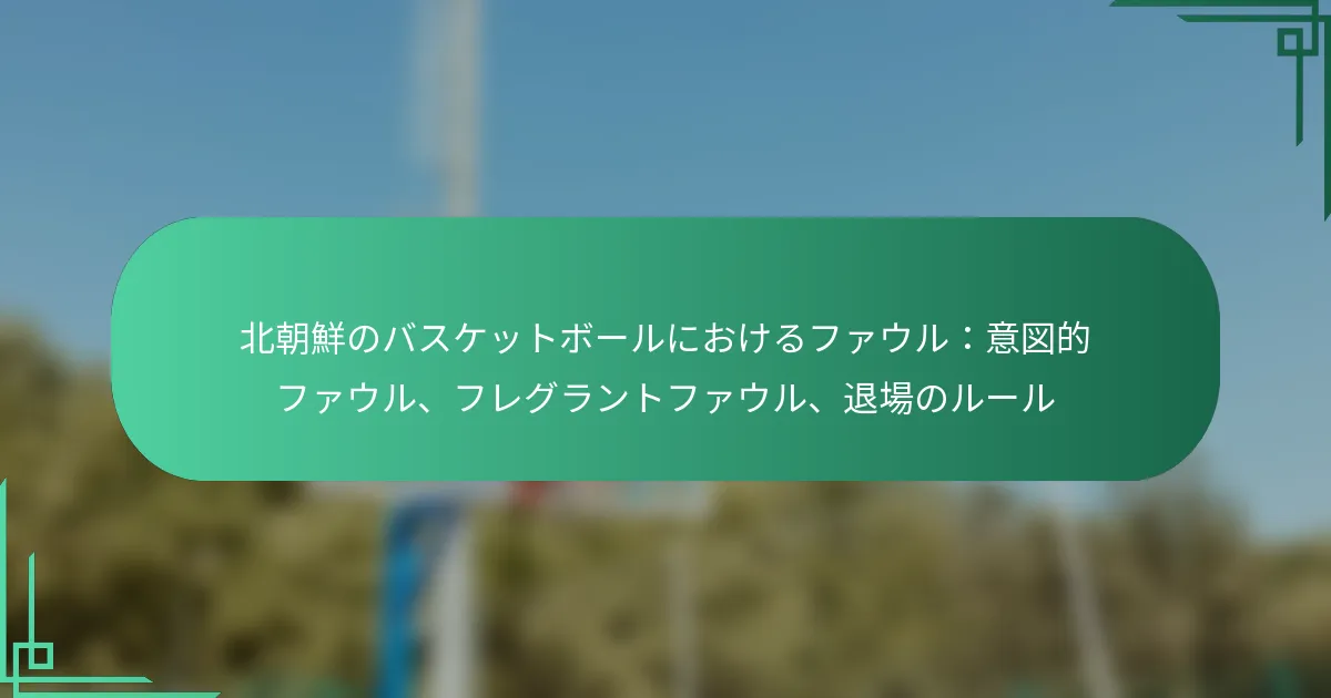 北朝鮮のバスケットボールにおいて、ファウルはゲームの整合性と流れを維持する上で重要な役割を果たします。意図的なファウルは、相手を妨害することを目的とした故意の行為であり、フレグラントファウルは過剰な接触を伴い、厳しい罰則を引き起こす可能性があります。さらに、重大な違反による選手の退場は、チームのダイナミクスやパフォーマンスに大きな影響を与えることがあります。