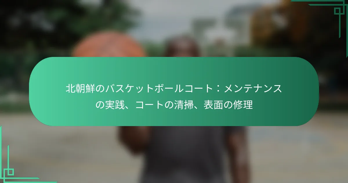 北朝鮮におけるバスケットボールコートの維持管理には、プレイングサーフェスが安全で機能的であることを確保するためのいくつかの重要な実践が含まれます。定期的なメンテナンスは、コートの寿命を延ばし、選手のパフォーマンスを向上させるために不可欠です。