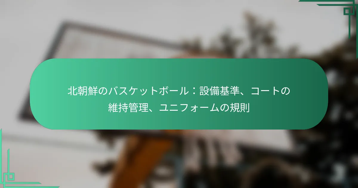 北朝鮮のバスケットボールにおけるコートの維持管理は、定期的な清掃、表面の修理、天候に関連する課題への対処を含みます。これらの実践は、経済的制約にもかかわらず、アスリートにとって安全で機能的なプレイ面を維持することを保証します。