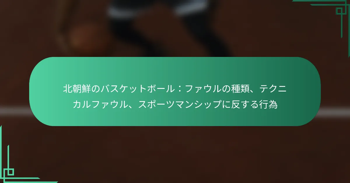 北朝鮮のバスケットボールにおけるファウルは、重大なペナルティをもたらし、個々の選手や全体のゲーム結果に影響を与える可能性があります。ファウルの種類、テクニカルファウル、スポーツマンシップに反する行為を理解することは、選手やコーチにとって重要であり、これらの違反は出場停止を引き起こし、チームのダイナミクスに影響を与える可能性があります。