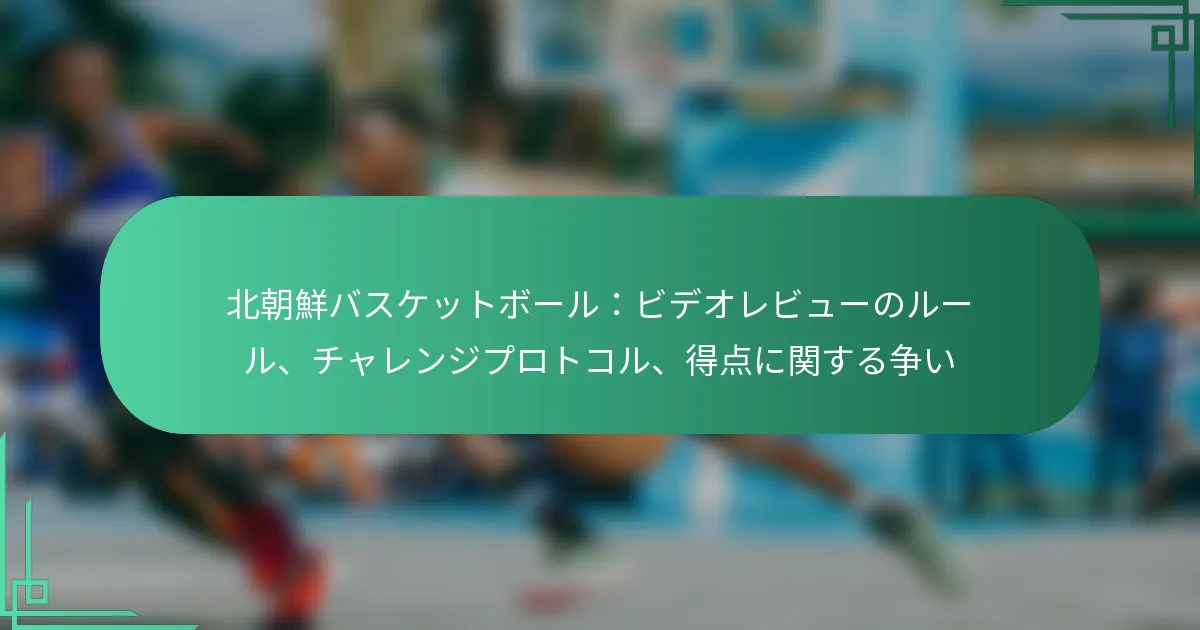 北朝鮮のバスケットボールにおいて、ビデオレビューのルールは、公正さと正確さを維持するために重要な役割を果たしており、レビューの基準と手順を明確に定めています。チャレンジプロトコルにより、チームは特定の審判の決定に異議を唱えることができ、コート上の争いに対処するための構造化されたアプローチが確保されます。さらに、得点に関する争いは、エラーや見逃しによって頻繁に発生し、試合の結果に大きな影響を与える可能性のあるチャレンジを促します。
